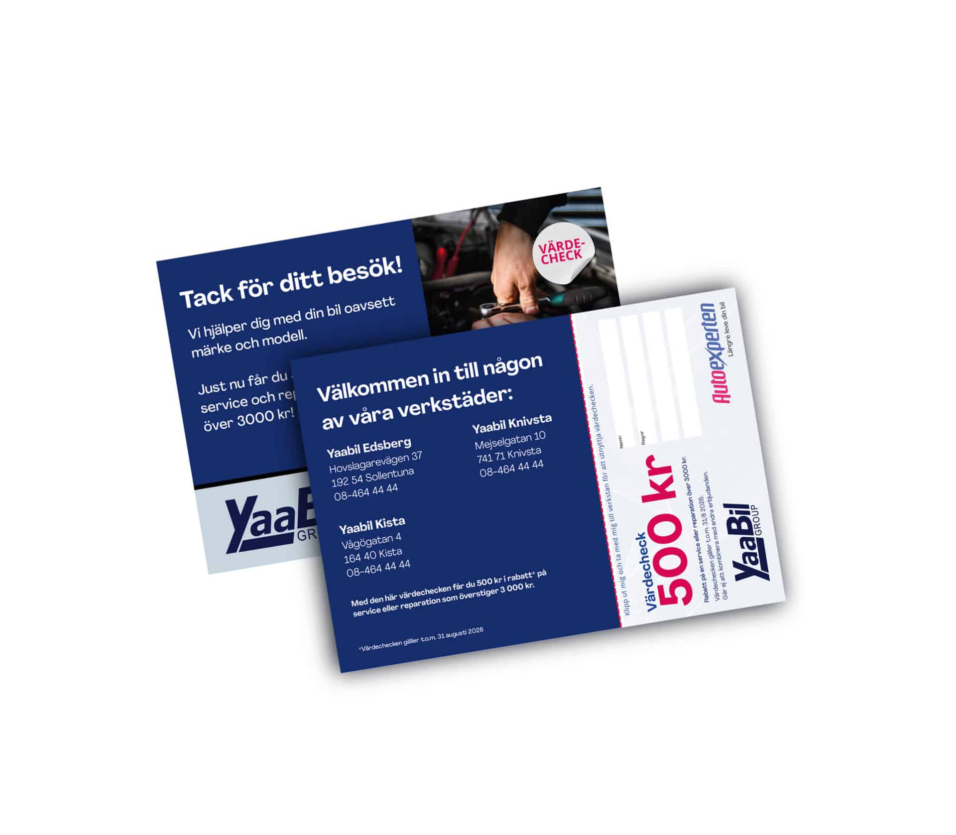 Erbjudandet kan ej kombineras med andra rabatter eller erbjudanden. Värdechecken gäller t om 31/8 2026.